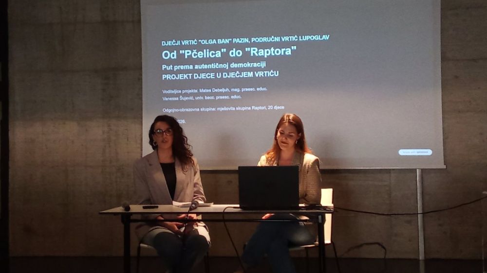 Odgojiteljice Matea Debeljuh i Vanessa Šujević su se s projektom „Od Pčelica do Raptora – put prema autentičnoj demokraciji“ plasirale na državnu smotru
